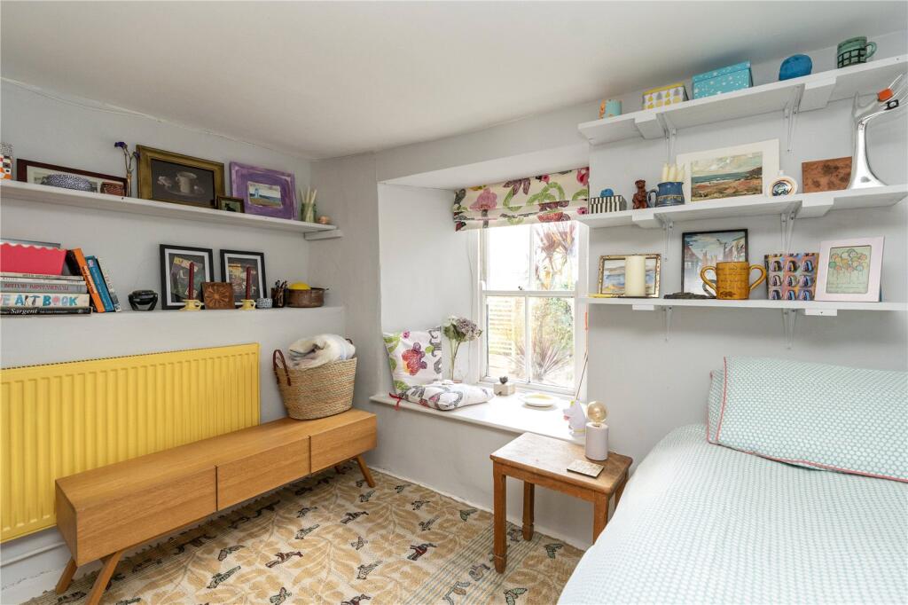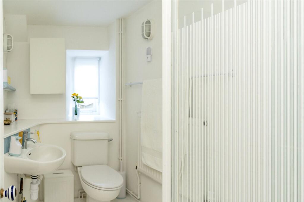 Single-glazed sash window to front with harbour glimpse. Radiator, power points, concrete flooring, BT point.