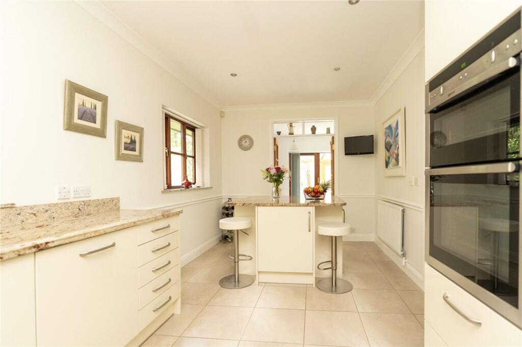 2x double-glazed hardwood windows to rear. Double doors into living room. Fitted kitchen with granite worktops. Sink and drainer. Miele dishwasher, Neff double oven. 5 ring gas Neff hob with extractor over. 2x integrated fridges. Various power-points. Radiator.