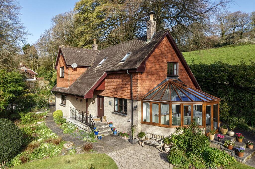 Accessed along a private driveway and over a private bridge into the most stunning grounds. Large brick paved parking area in front of double garage with off road parking for several vehicles. Fence and hedge borders on all sides. Behind the garage- Greenhouse, raised vegetable beds, block log store with attached store room/potting shed (13'x4'9) To the front of a property lawn to either side with a brick paved path to front door. Historic well. Access to rear to both sides. Lawn and flower beds continue to the front. Rear side of the property-Manicured lawn to two levels. Decked patio area, well planted borders and beds. Outdoor lighting. Further patio at top. To the front of the property you have the beautiful Larrigan river with trout, herons and gentle water falls cascading down. To the rear- large patio area, tap, gas bottles for hob. 9'x8' shed with log store lean into rear, oil tank.