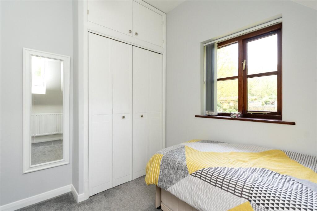 Hardwood double-glazed windows to front and side. Built-in wardrobes to one wall and further door to hanging space in roof access. Radiator, various plug sockets.