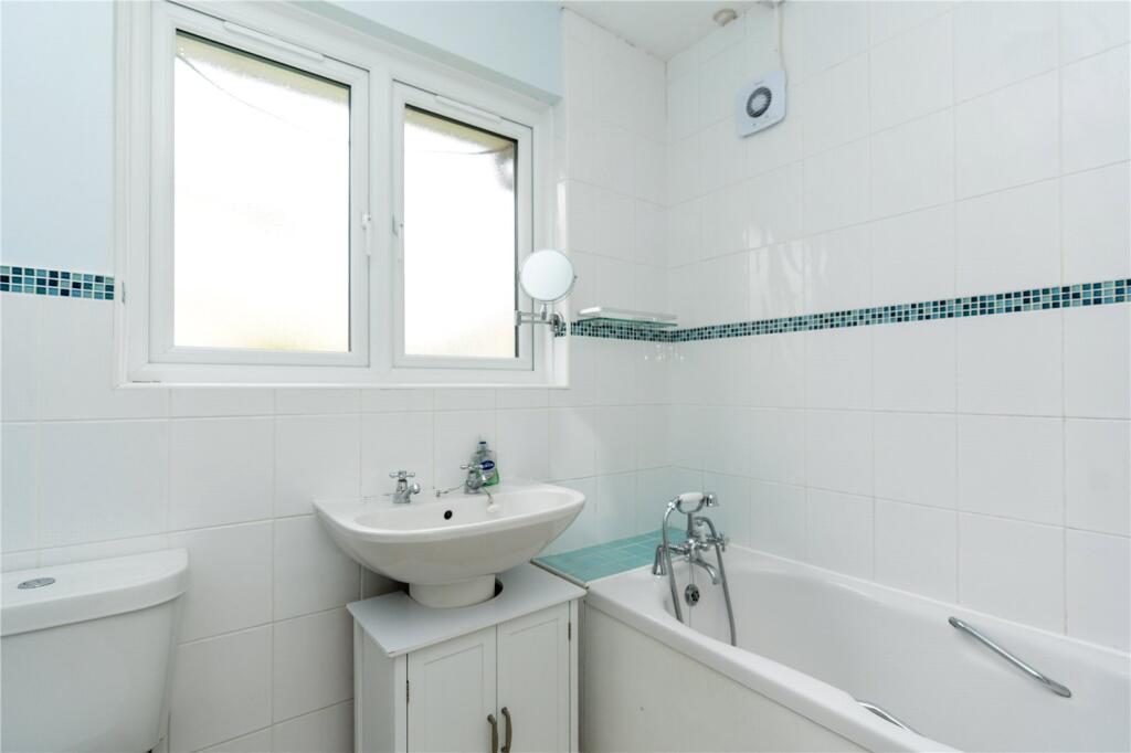 Upvc frosted window to rear. Bath with shower over, basin, w/c, extractor. Radiator.