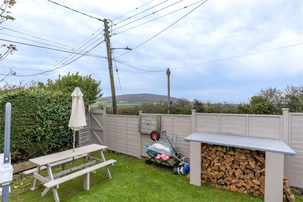Laid to lawn, log storage, fence marking the boundary, access gate to the front, beautiful views of surrounding fields and countryside. Space for barbecue.