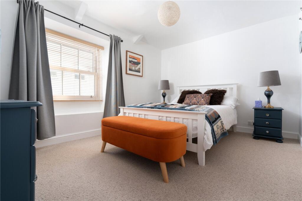 Stripwood door, double glazed sliding window to rear. Pretty outlook into the courtyard. Radiator, access to roof space, power point, recess with shelving to one wall.