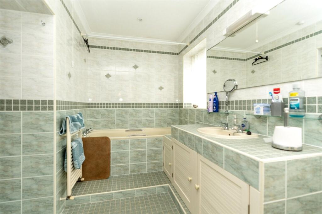 11 x 1.55m - W/C, wash hand basin with storage unit. Fully-tiled. Bath. Heated towel rail, 2 double-glazed frosted windows to rear. Electric Mira shower, extractor fan.