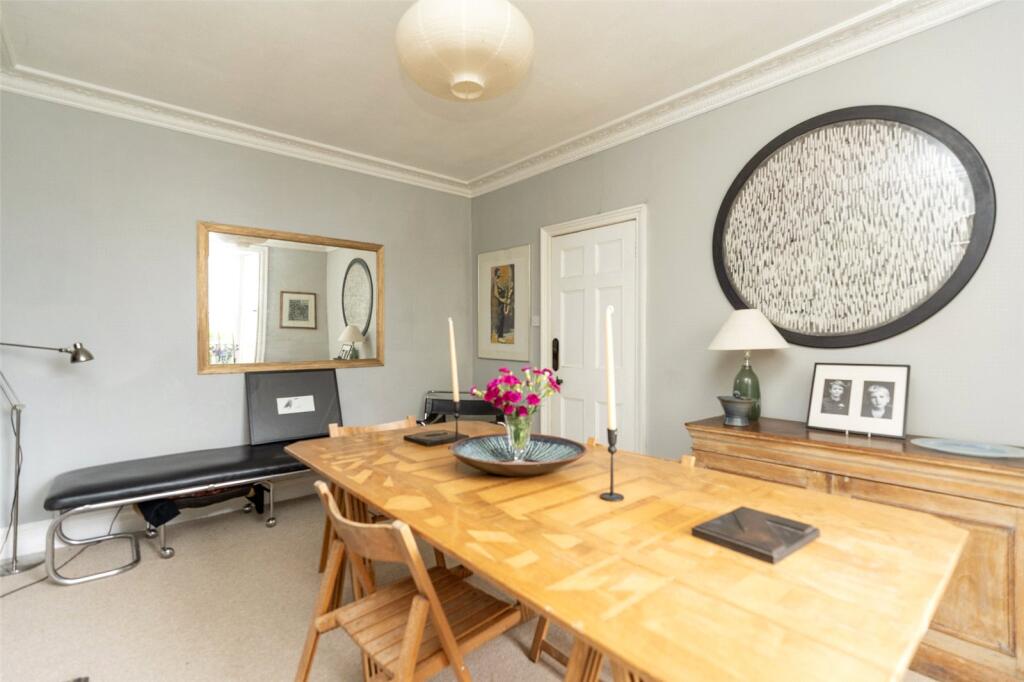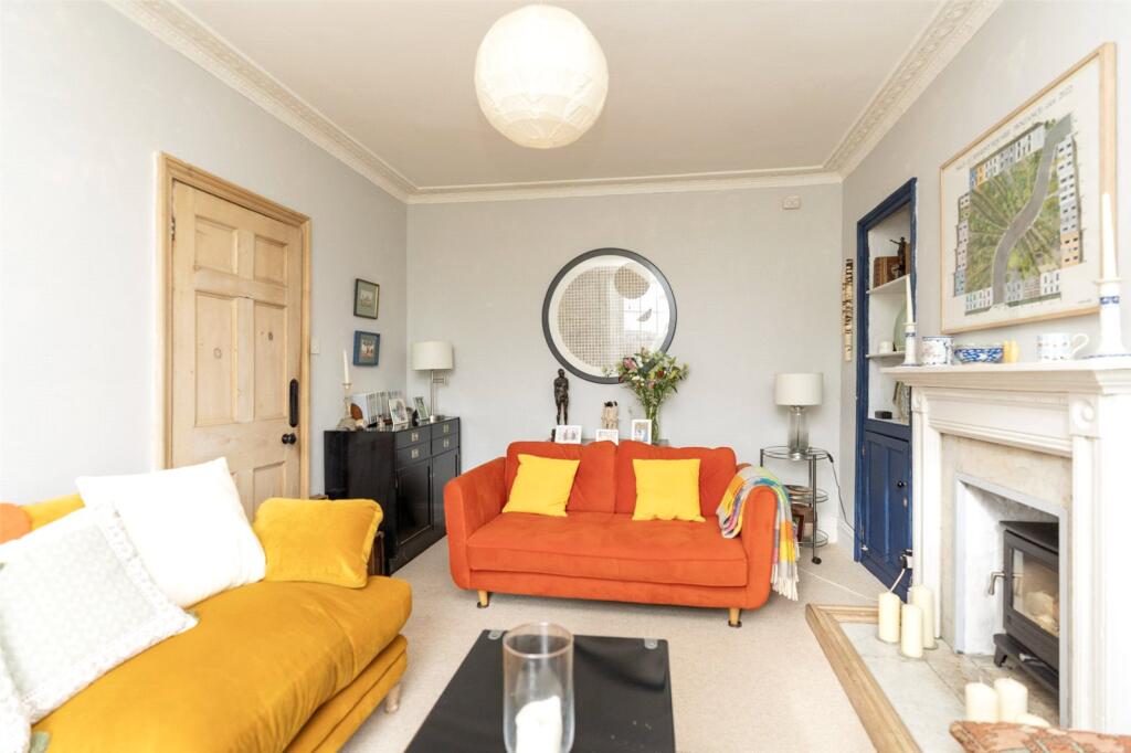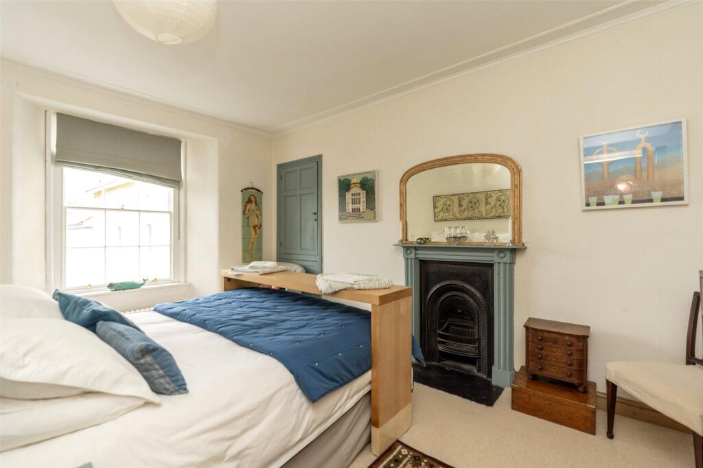 Single-glazed sash window with working shutters, power points, deep skirting. Column traditional style radiator. Storage alcove to either side of fireplace. Woodburner.