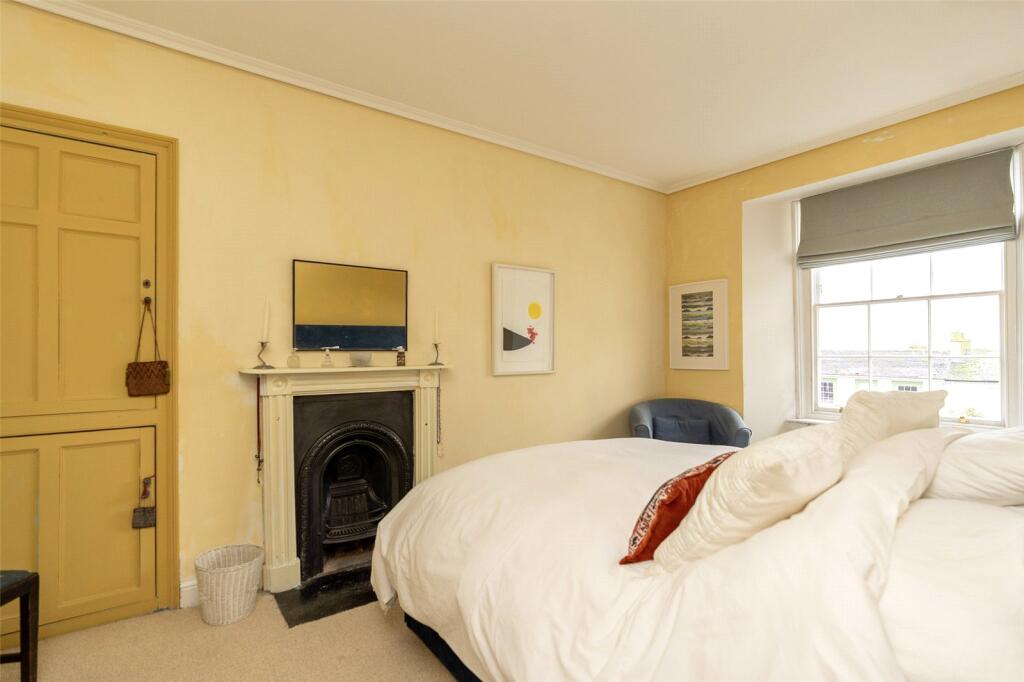Single-glazed wooden sash window to front with stunning view of Regent Square and Mounts Bay. Feature fireplace with mantle and hearth, power points. 2 Deep alcoves with storage. Column radiator.