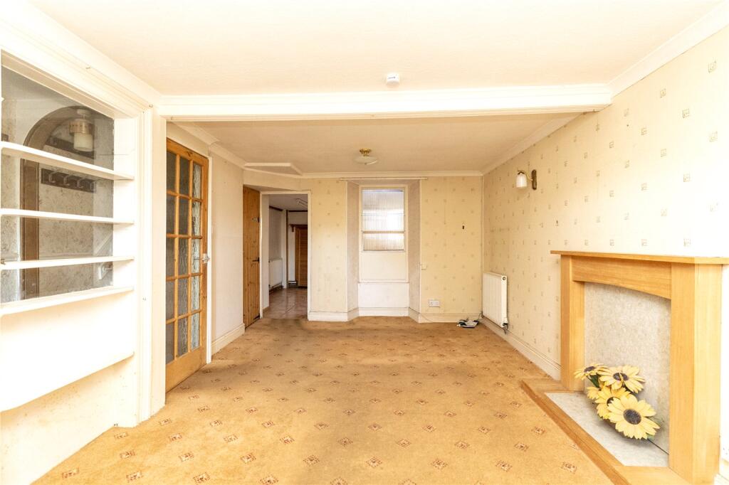 Fireplace, Upvc double-glazed window to front, 2 radiators, beam, power points. Fireplace with hearth and mantle. Door to understairs storage cupboard with shelving.